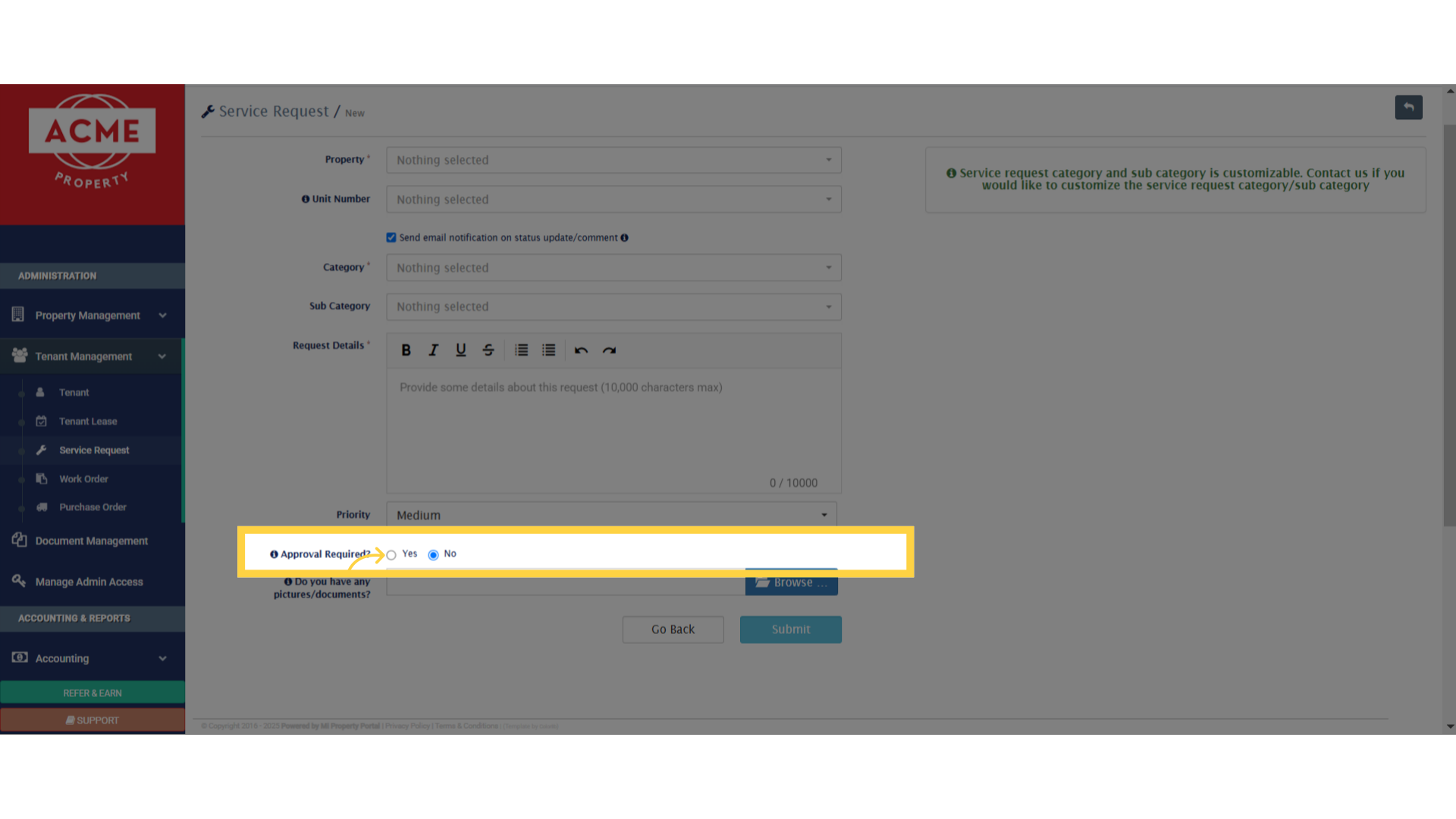 7. If the request needs approval before proceeding, don’t forget to choose the Approval Required option.