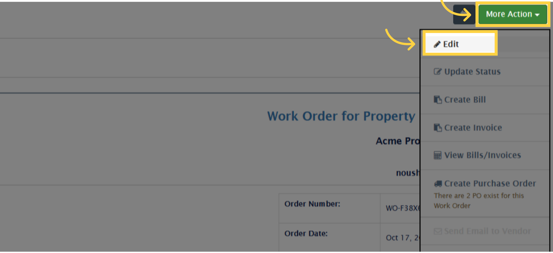3. Click on “More Action” dropdown menu, & click on the “Edit” option