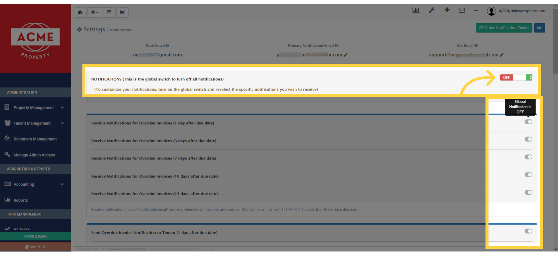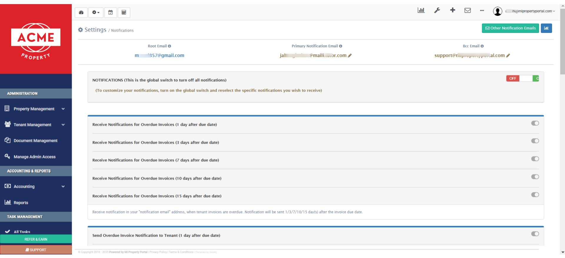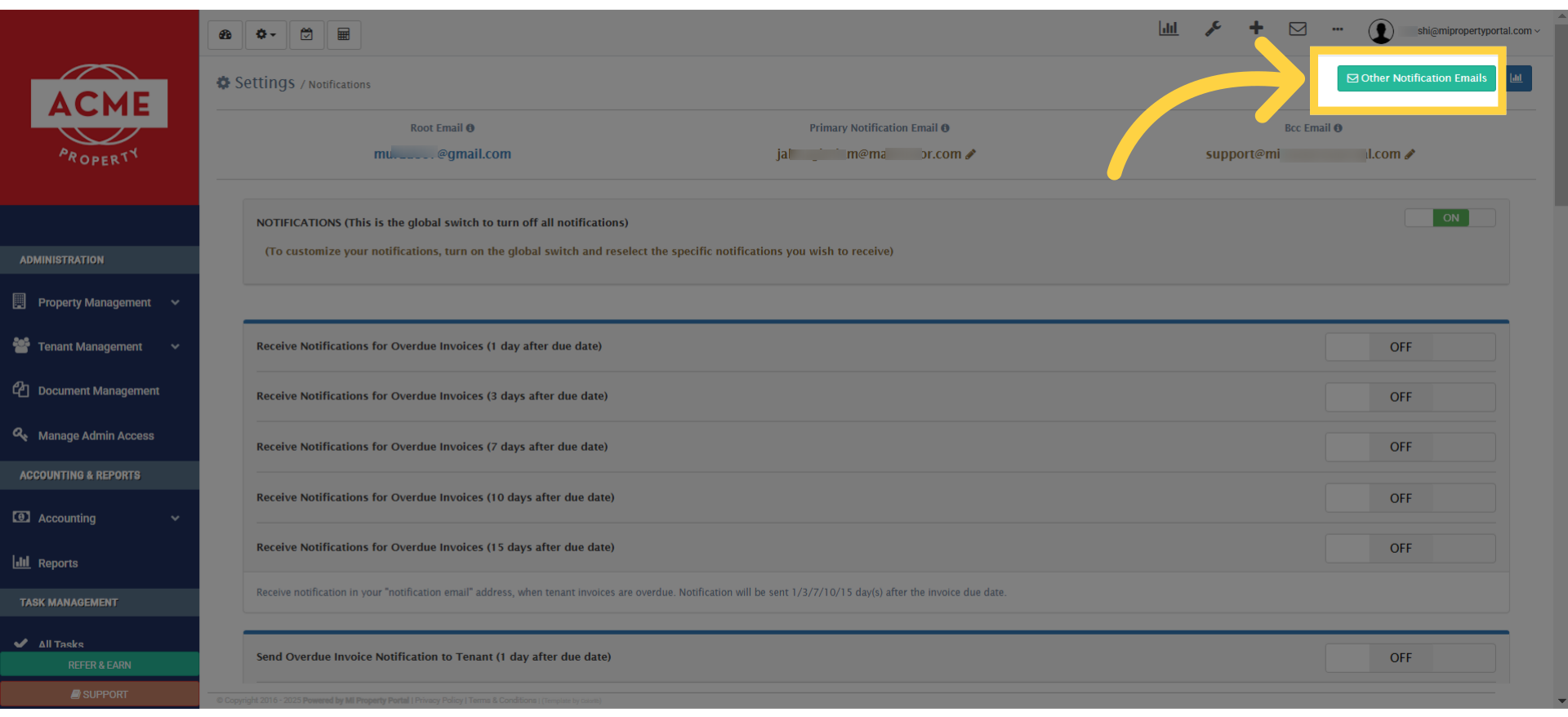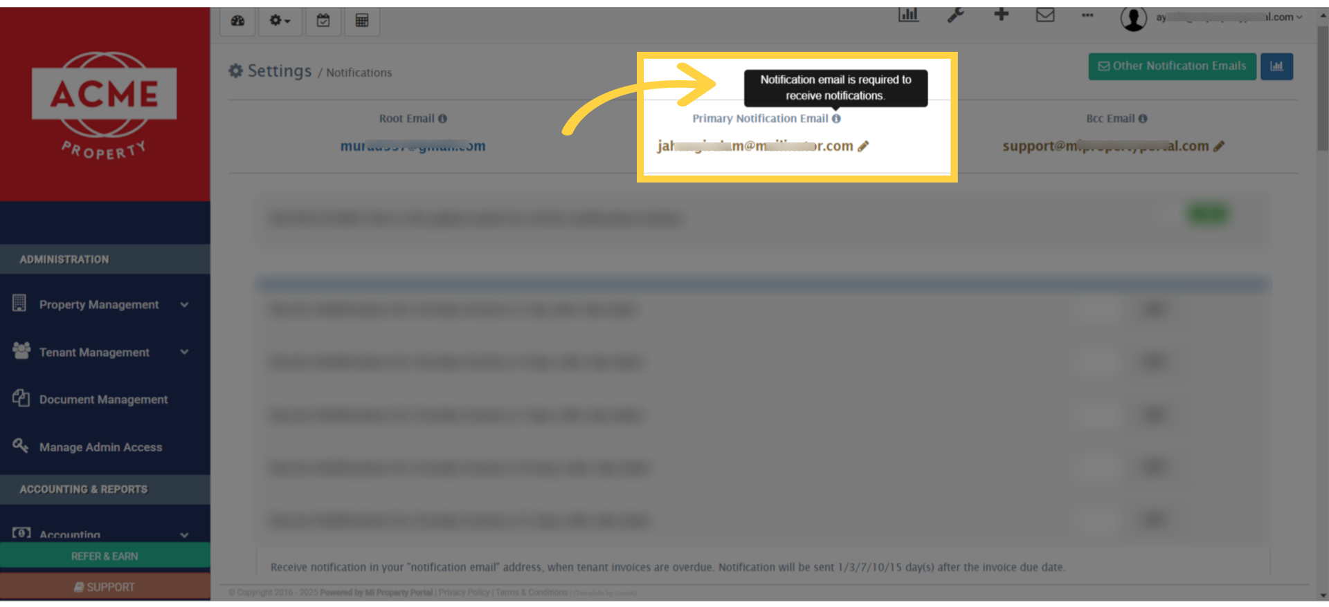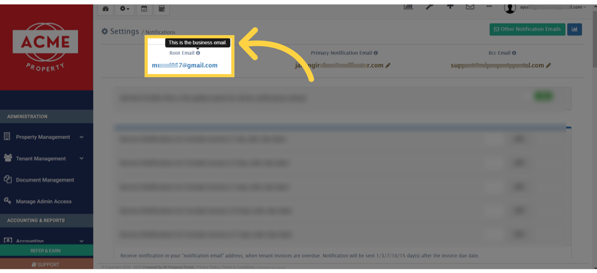 5. The primary email address receives all email notifications, if no other email address is set for the property.