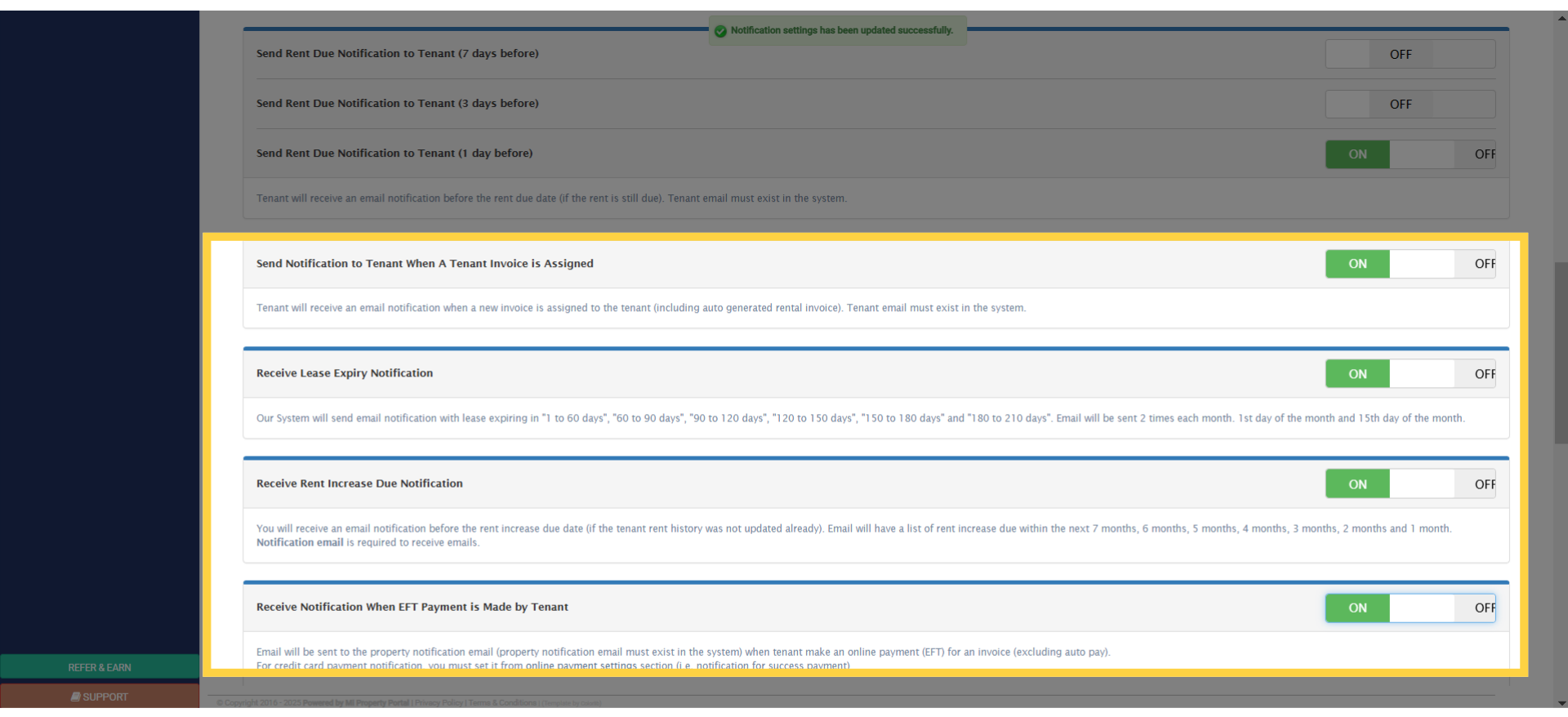 13. At the bottom of the page, you’ll discover a range of notification settings for lease expiries, bill reminders, service requests, and more.