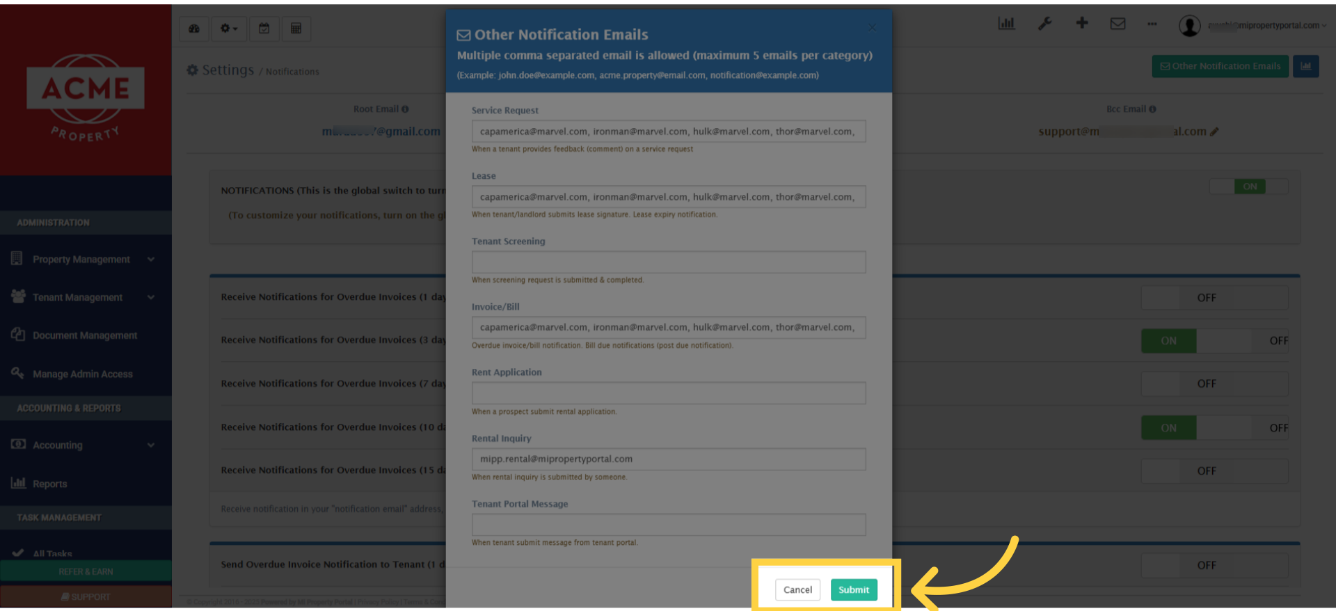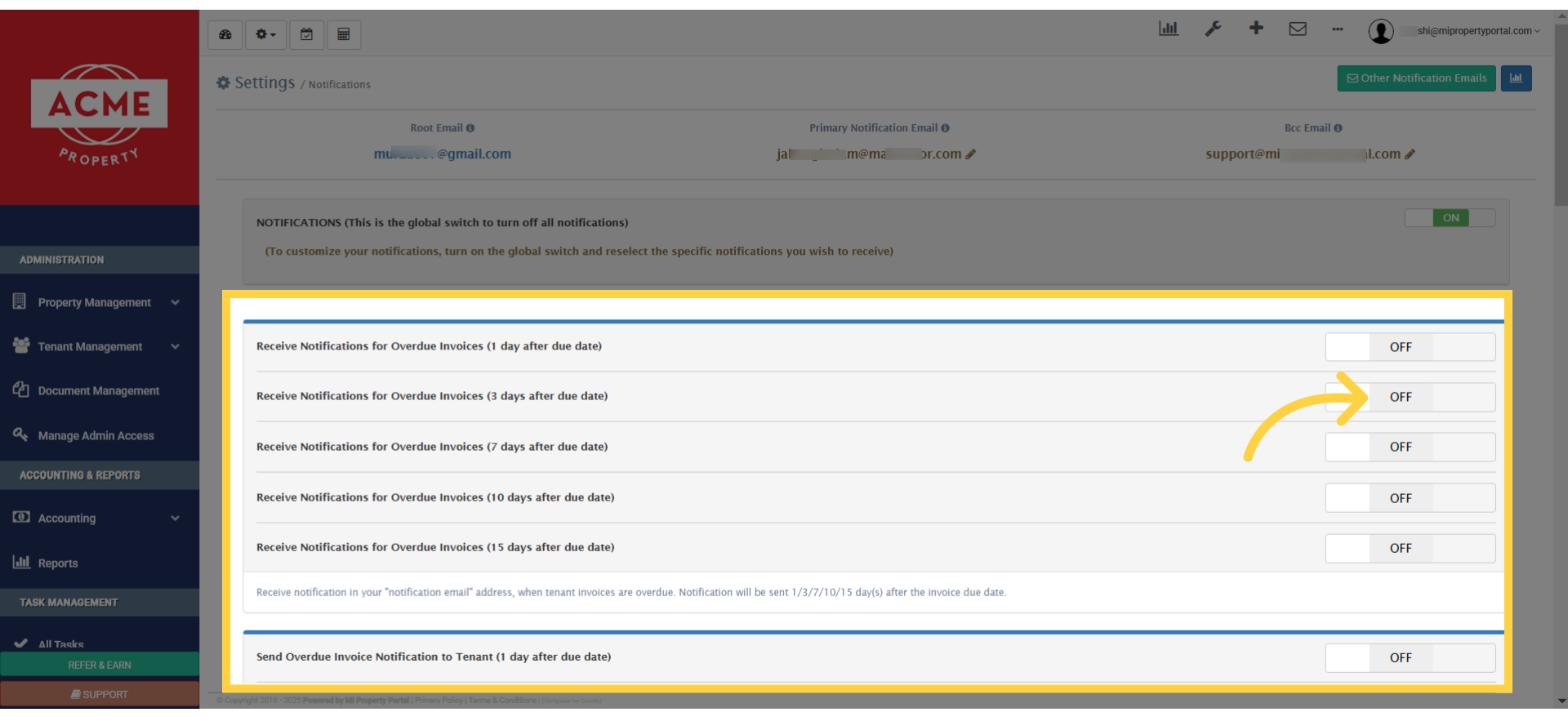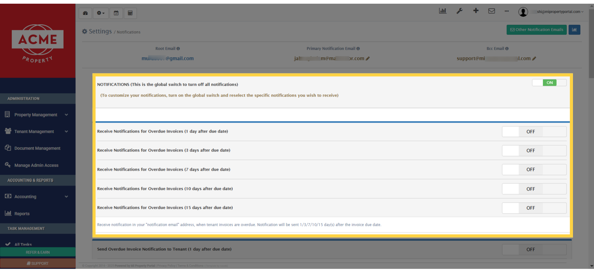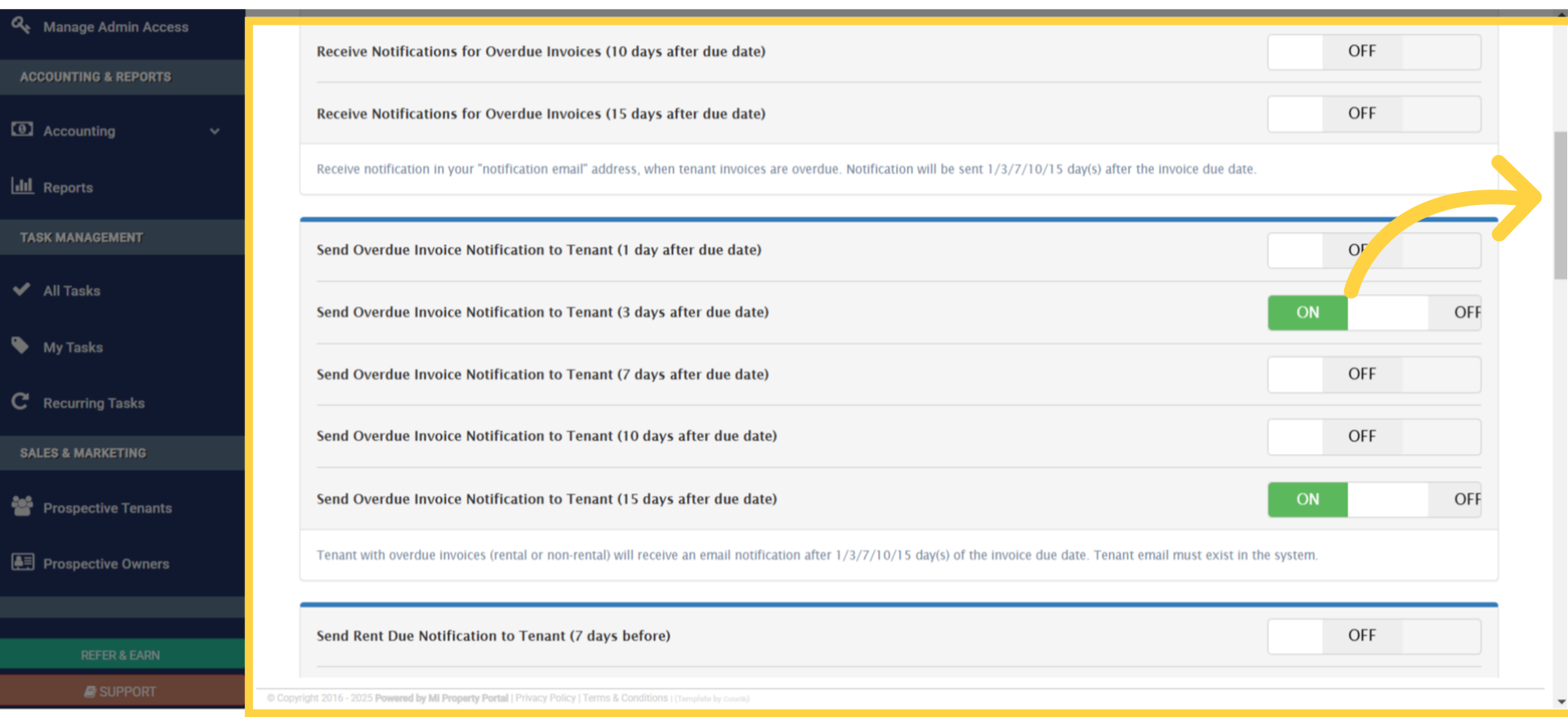 12. Scroll down on this page, and you’ll find more options for sending overdue invoices or rent-due notifications to tenants.