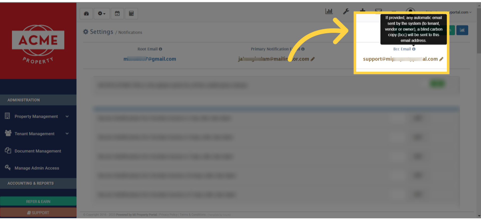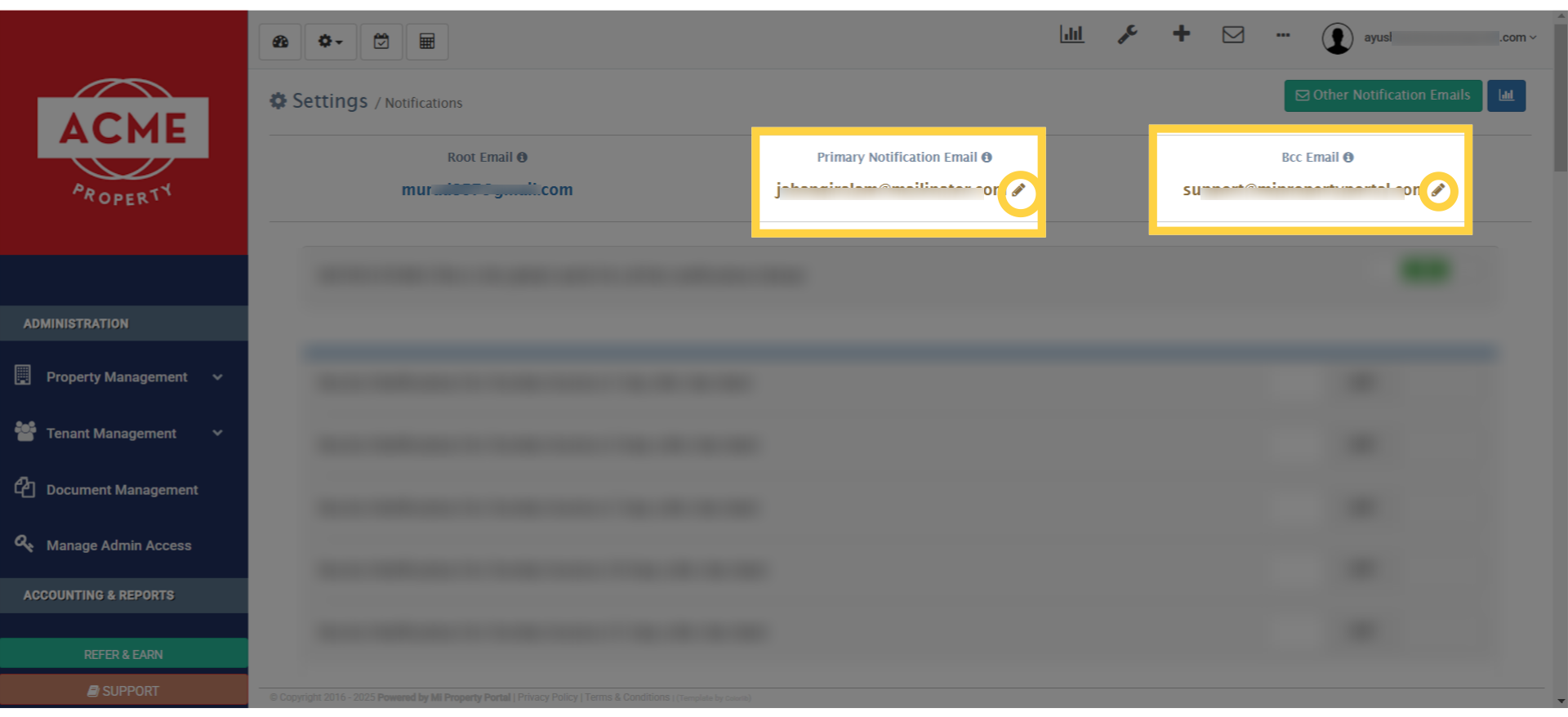 7. You can easily set up or edit both the primary email and the BCC email by clicking the edit icon right here.