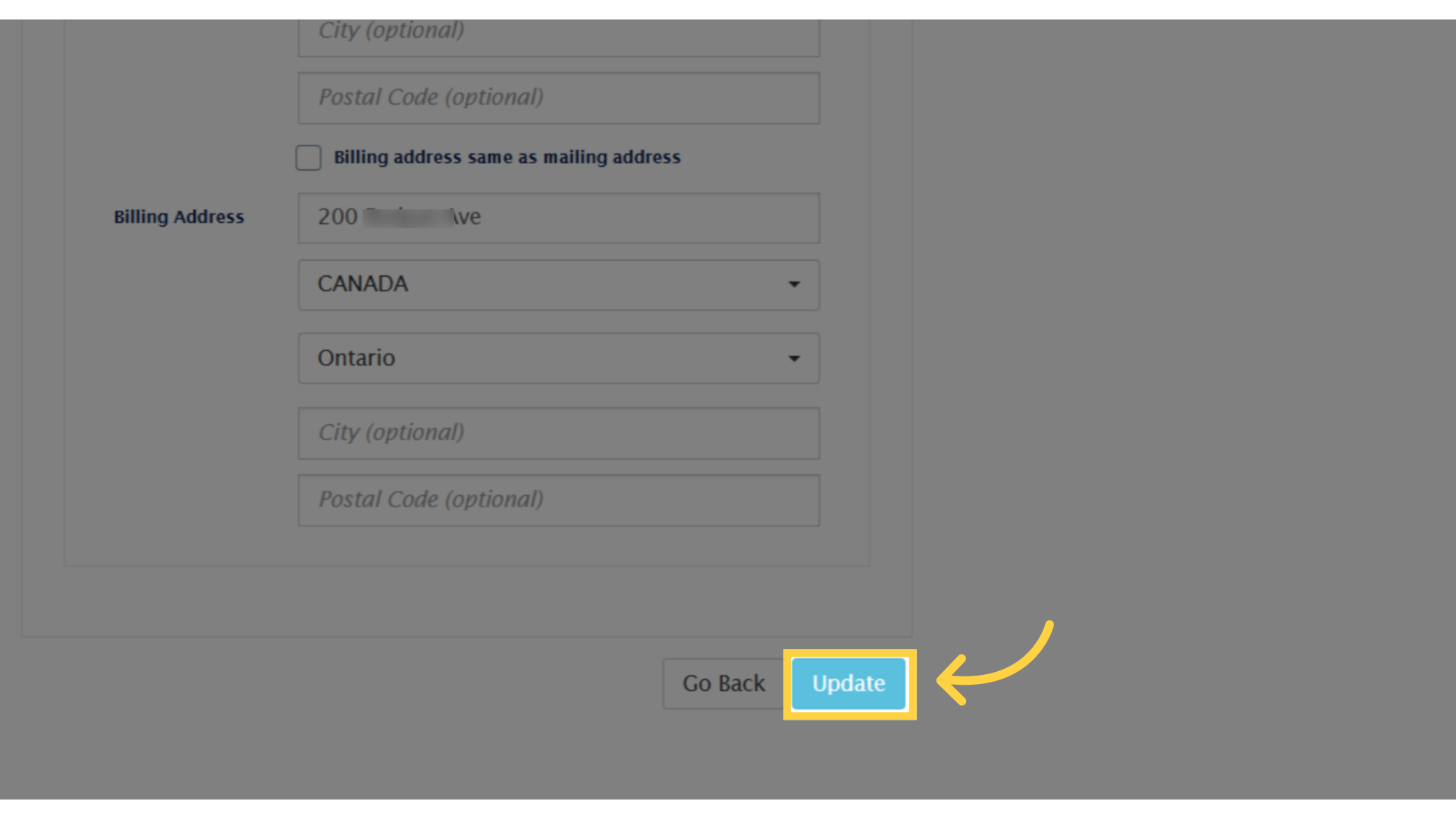 13. Update their email and billing addresses, then click Update